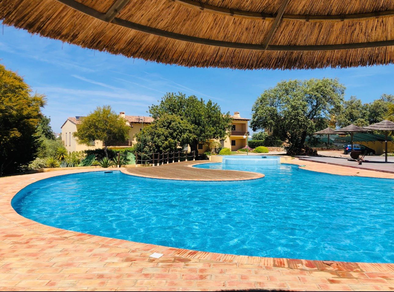 This lovely end-of-row townhouse is situated in a small condominium in the beautiful Algarve countryside, just a 3 minute drive (2.5km) from the village of Alcantarilha, and the beaches of Armação de Pêra and Salgados (12 mins drive, 6.5km).
