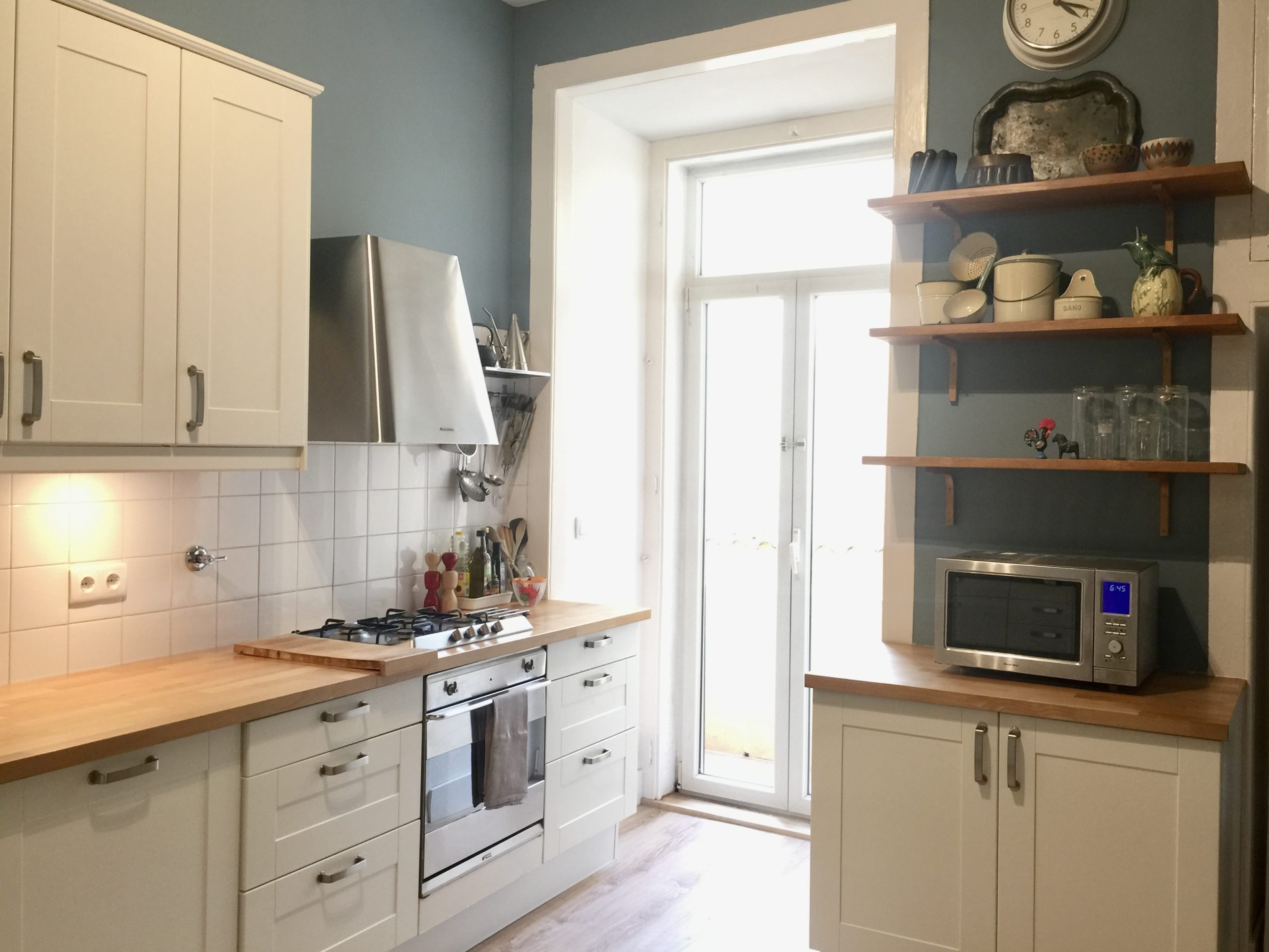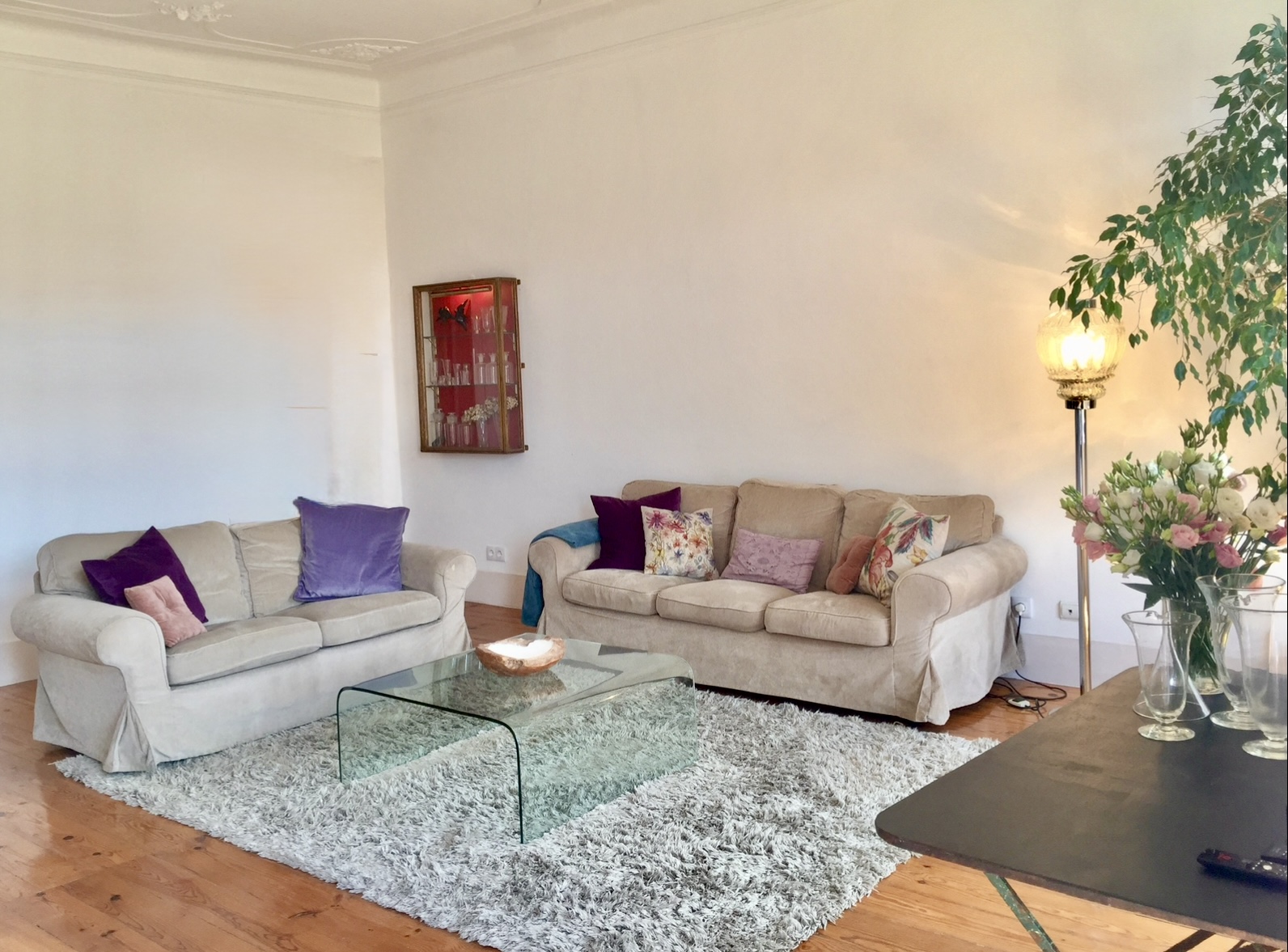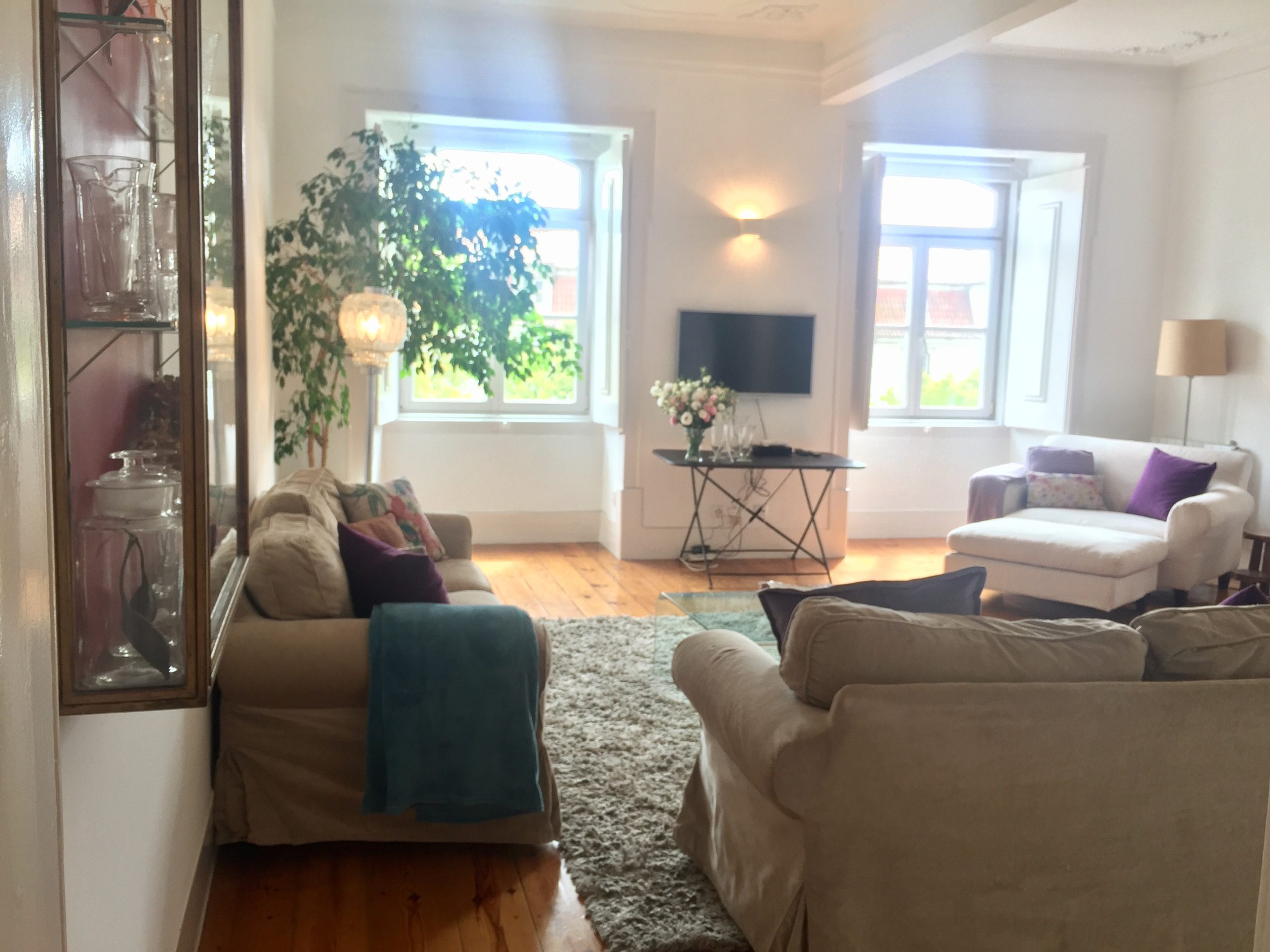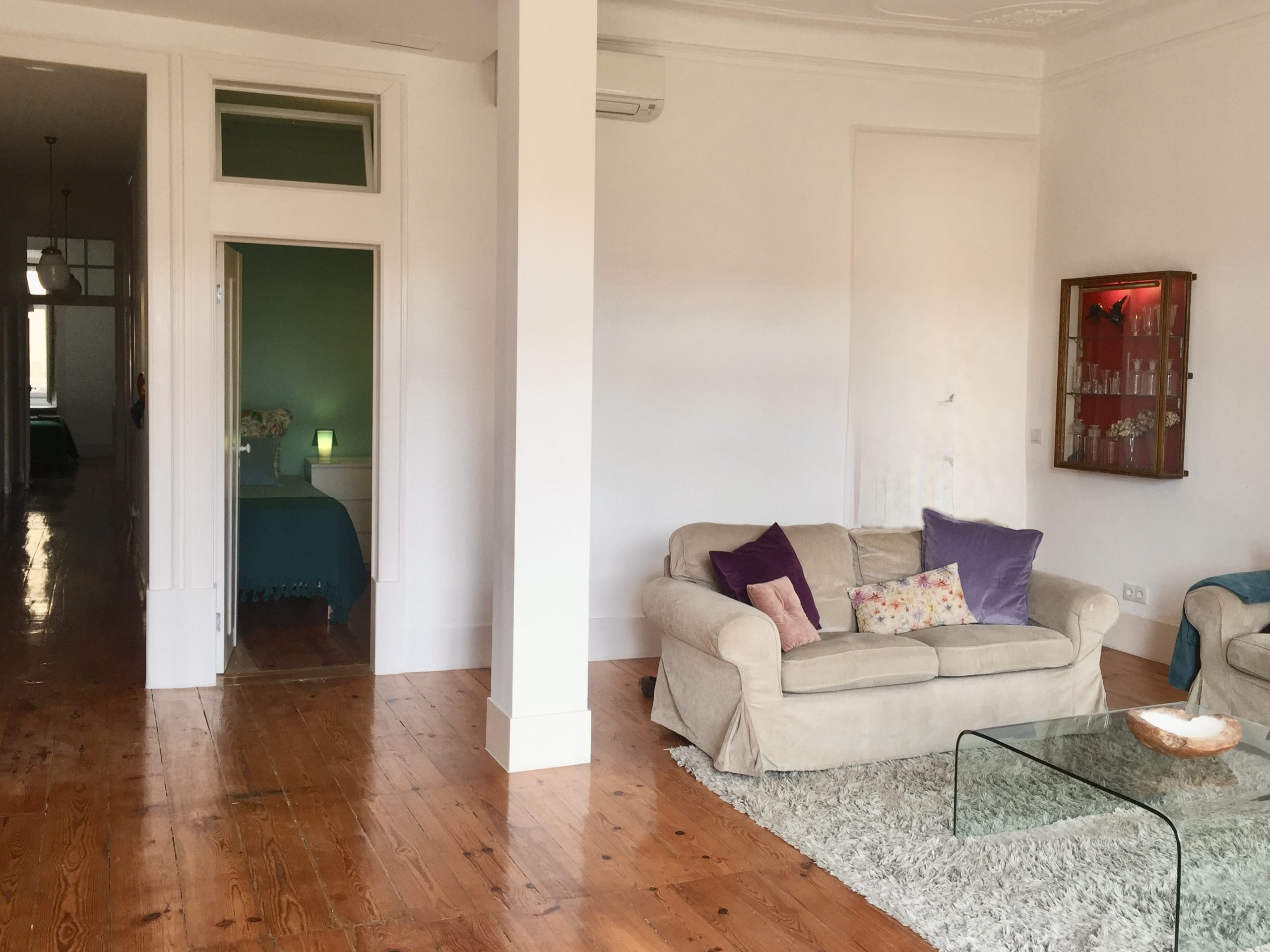 The apartment, set in a Pombaline-era (late 18th century) building, and features original plaster works on the high ceiling, original wood flooring and other distinct period features, while providing modern comfort (such as double glazed windows, air conditioning) and technology (fast wi-fi, and cable tv with international channels)
